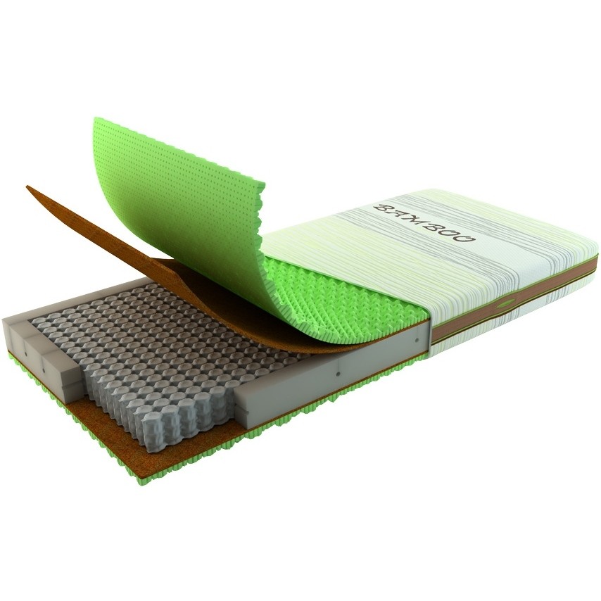 Матрасы от компании Roll Matratze, модель Bamboo Line 120x190, Тип пружинный (независимый), Жесткость средняя (3) и Количество слоев 5 шт, а также Наполнитель натуральный латекс, кокосовая койра.