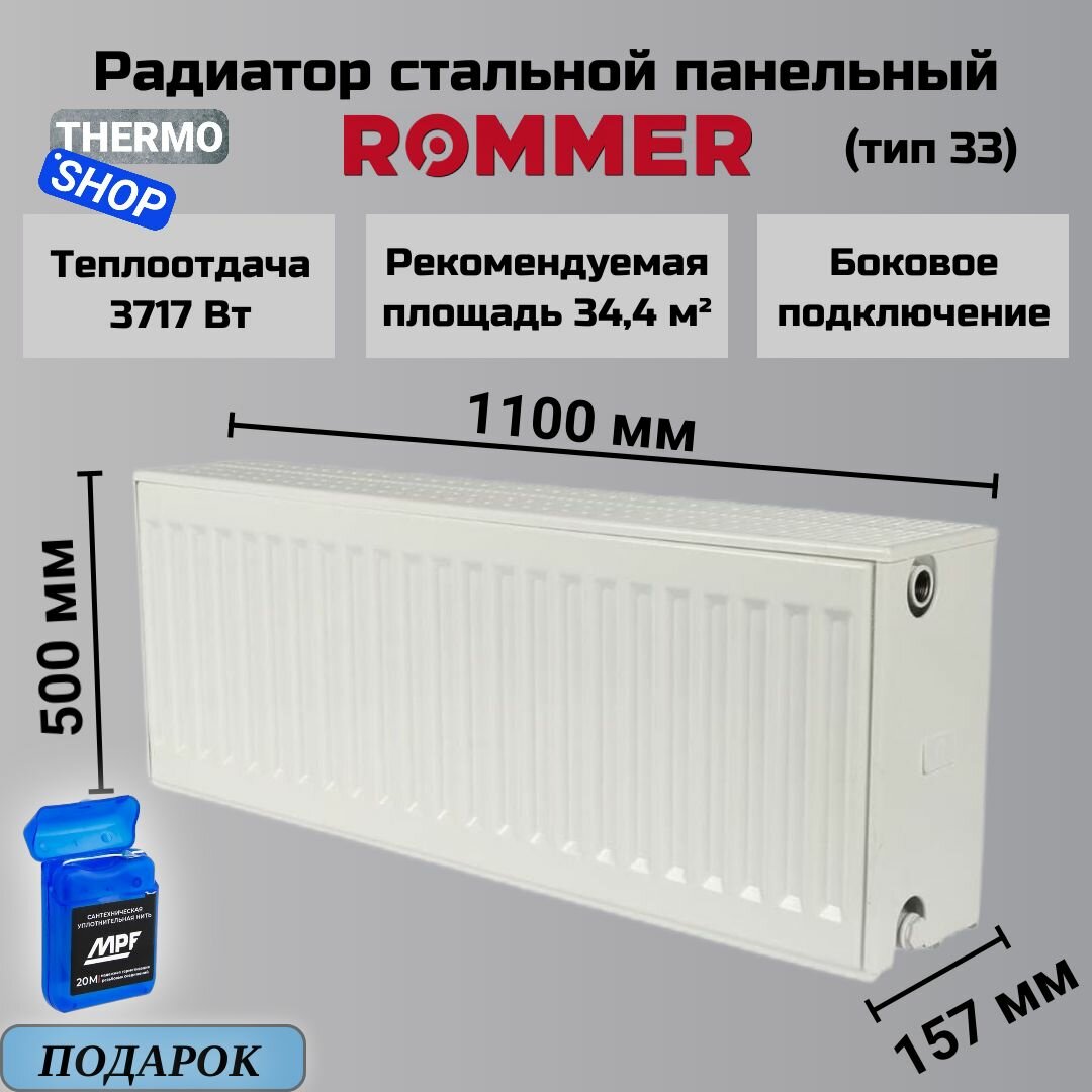 Радиатор стальной панельный ROMMER 500х700 боковое подключение Compact 33/500/700 Нить сантехническая 14 190 ₽ Подробнее