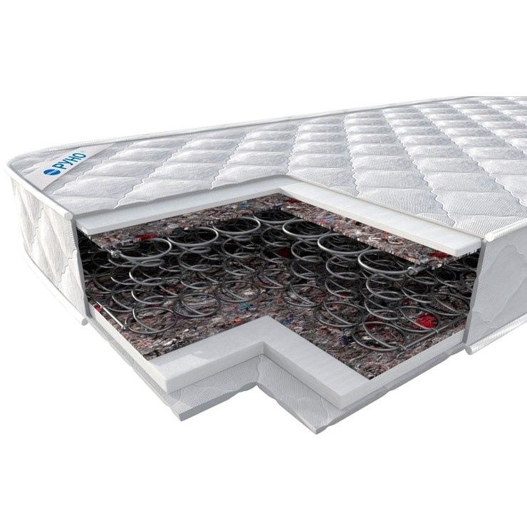 Матрасы от компании Runo, модель Optimal 120x190, Тип пружинный (Боннель), Жесткость низкая / высокая (1/5), двусторонний и Количество слоев 5 шт, а также Наполнитель термовойлок, пенополиуретан.