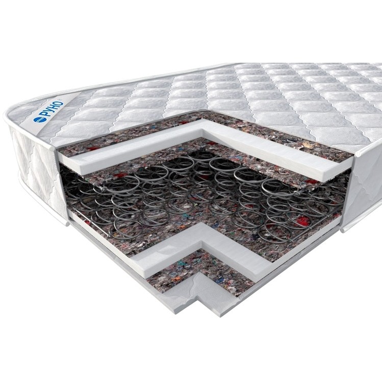 Матрасы от компании Runo, модель Zima-Leto 120x190, Тип пружинный (Боннель), Жесткость средняя (3) и Количество слоев 7 шт, а также Наполнитель термовойлок, пенополиуретан.