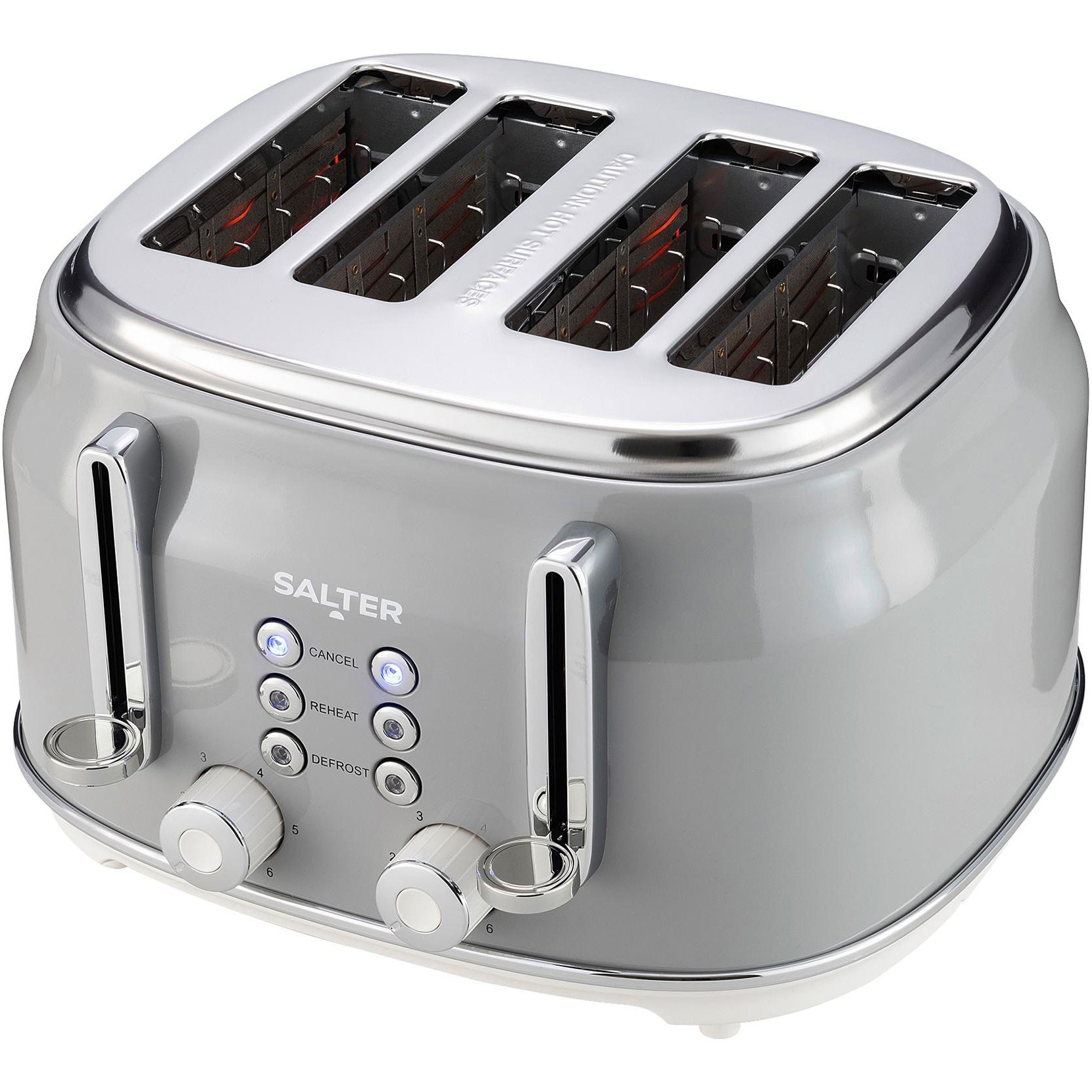 Тостеры, бутербродницы и вафельницы от компании Salter, модель Retro EK5739GRY, Тип тостер, Мощность 1630 Вт и Кол-во отделений тостера 4, а также Кол-во изделий 4.