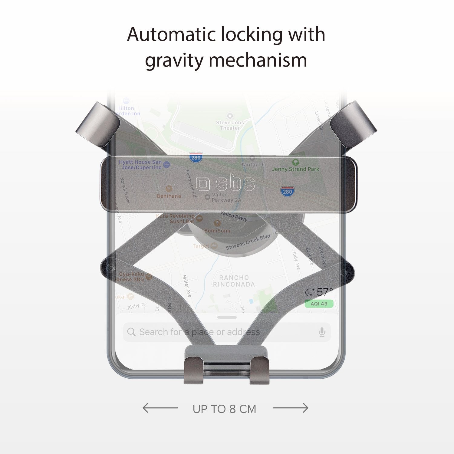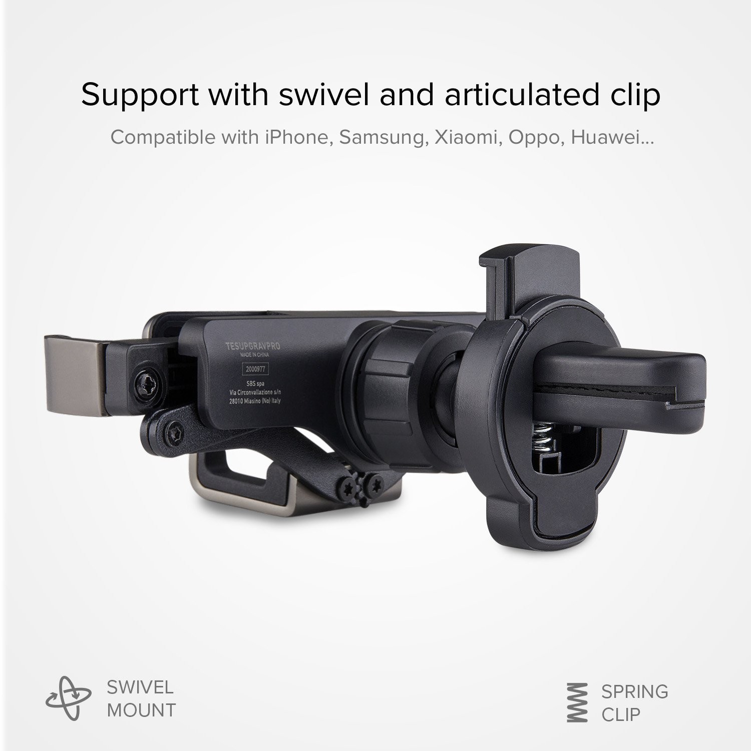 Держатели и подставки от компании SBS, модель TESUPGRAVPROS, Назначение автомобильный, Крепление держателя зажим на воздуховод и Крепление гаджета зажим, а также Ширина зажима 80 мм.