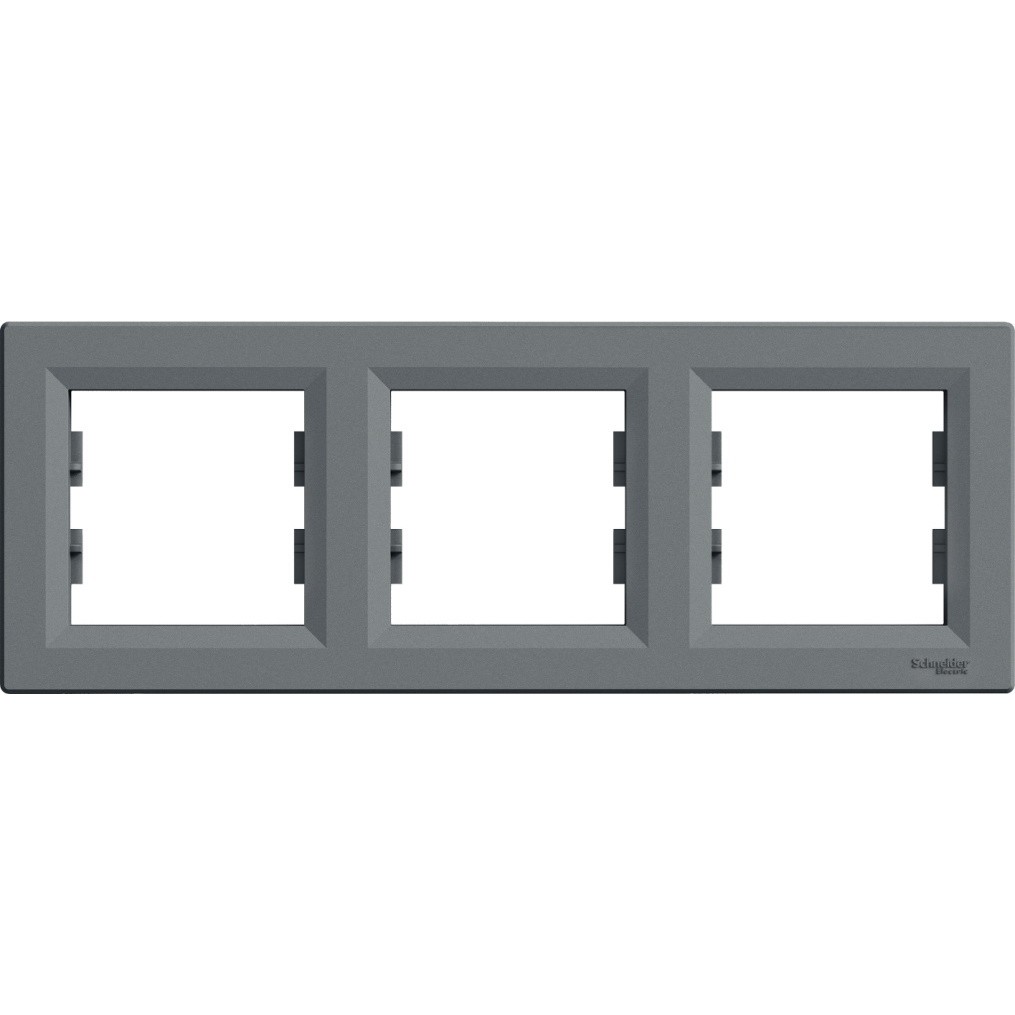 Рамки для розеток и выключателей от компании Schneider, модель Asphora EPH5800362, Цвет серый, Количество постов 3 шт и Расположение горизонтальная, а также Форма выреза прямоугольный.
