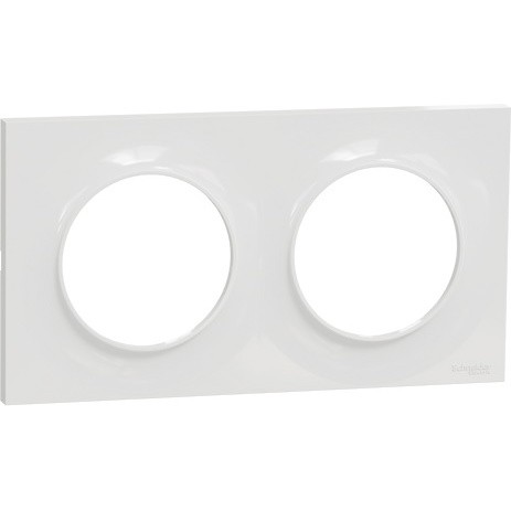 Рамки для розеток и выключателей от компании Schneider, модель Odace S52P704, Количество постов 2 шт, Расположение универсальная и Форма выреза круглый, а также Внешняя форма прямоугольная (прямые линии).