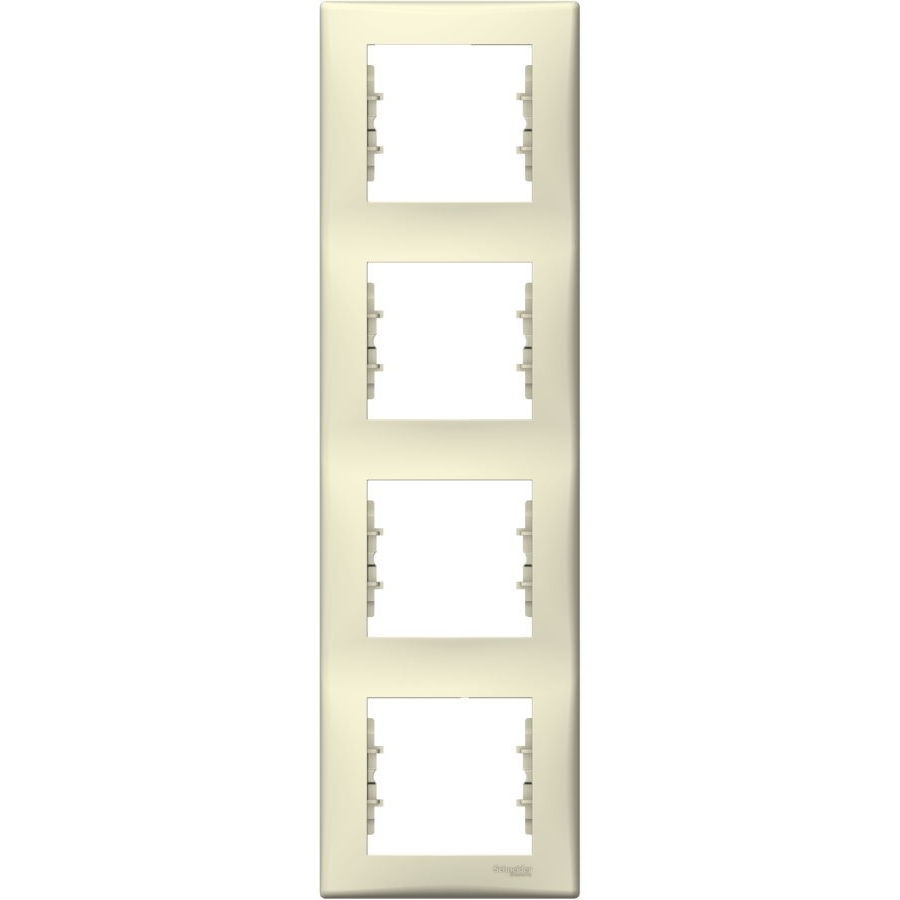 Рамка для розетки / выключателя от компании Schneider, модель Sedna SDN5802047, Цвет бежевый, Количество постов 3 шт и Расположение вертикальная, а также Внешняя форма прямоугольная (прямые линии).
