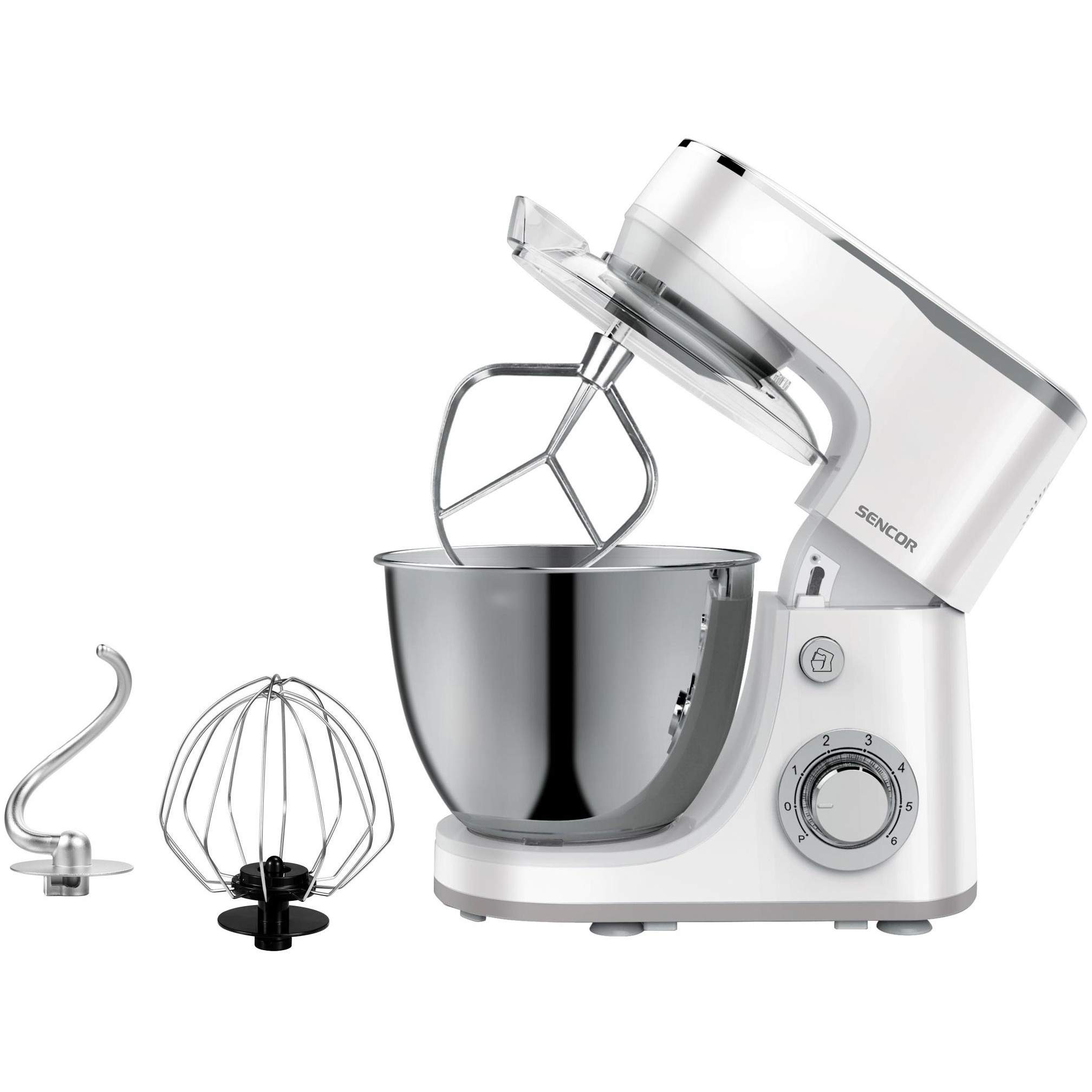 Кухонные комбайны от компании Sencor, модель STM 3633OR оранжевый, Тип планетарный миксер, Насадки основная чаша и Аксессуары венчик для взбивания / биттер для перемешивания / насадка / крюк для замеса теста, а также Емкость чаши 5.5 л.
