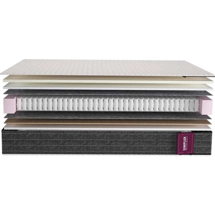 Матрасы от компании Simpler, модель Flexy Galaxy 80x190, Тип пружинный (независимый), Жесткость средняя / выше средней (двусторонний) и Количество слоев 7 шт, а также Наполнитель пена (Memory Foam), пенополиуретан, войлок, кокосовая койра.