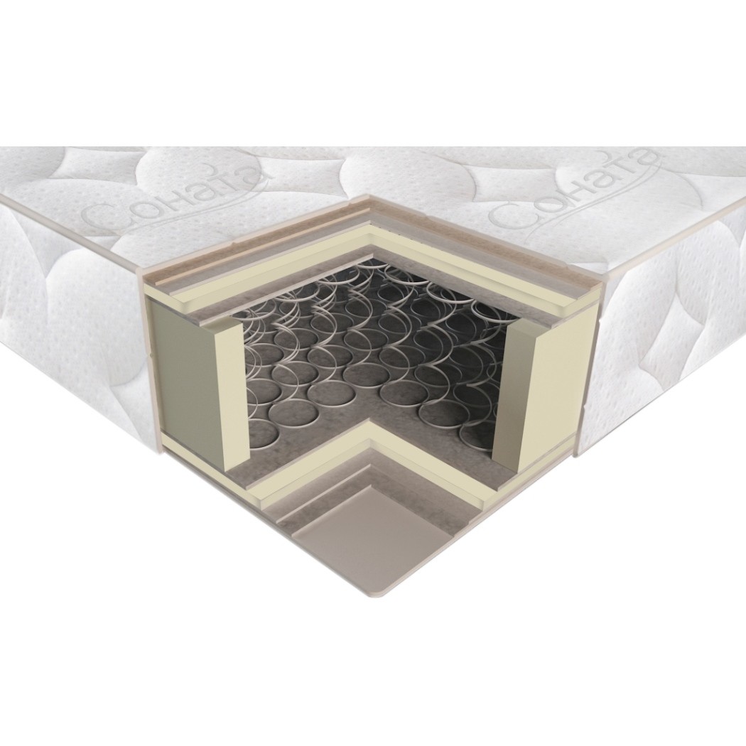 Матрасы от компании Sonata, модель Diana 150x190, Тип пружинный (Боннель), Жесткость ниже средней (2) и Количество слоев 9 шт, а также Наполнитель шерсть, синтепон, пена Aerolat, термоволокно, хлопок.