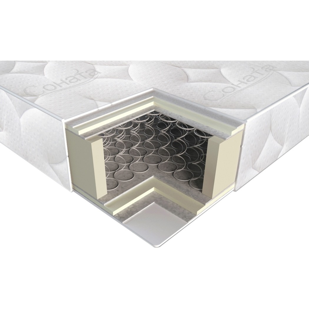 Матрасы от компании Sonata, модель Margo 70x190, Тип пружинный (Боннель), Жесткость ниже средней (2) и Количество слоев 7 шт, а также Наполнитель синтепон, пена Aerolat, термоволокно.