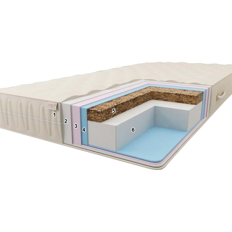 Матрасы от компании Sonel, модель K 3 18 90x190, Тип беспружинный, Жесткость средняя / высокая и Количество слоев 8 шт, а также Двусторонний +.