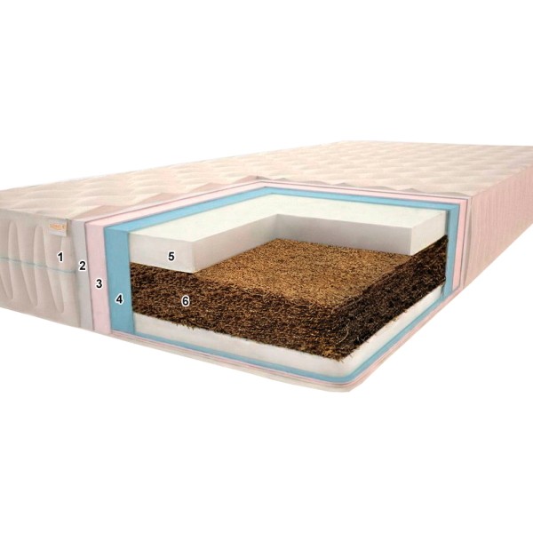 Матрасы от компании Sonel, модель K 7 24 80x190, Тип беспружинный, Жесткость средняя / высокая и Количество слоев 9 шт, а также Наполнитель синтепон, спанбонд, полушерстяной ватин, пена, кокосовая койра.