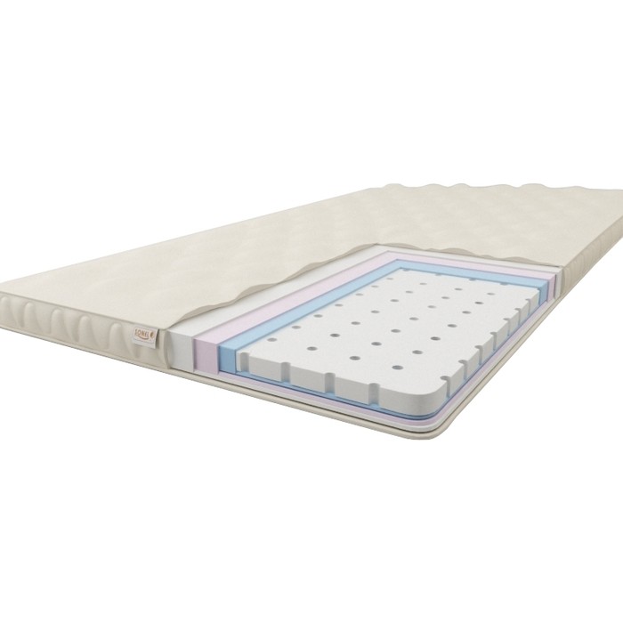 Матрасы от компании Sonel, модель Laguna 6 140x200, Тип беспружинный, Жесткость низкая (1) и Количество слоев 7 шт, а также Наполнитель синтепон, спанбонд, полушерстяной ватин, латекс.