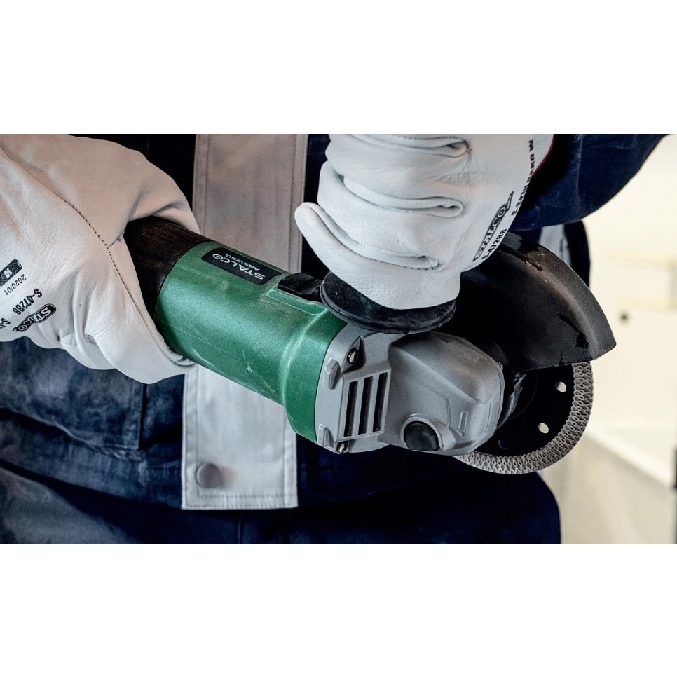 Шлифовальные машины от компании STALCO, модель S-97301, Тип угловая (болгарка), Кол-во оборотов 8000 об/мин и Макс. диаметр диска 125 мм, а также Дополнительно плавный пуск / защита от случайного включения / бесщеточный двигатель.