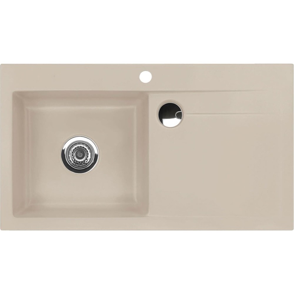 Кухонные мойки от компании SystemCeram, модель Stema 90 5053, Тип монтажа врезная накладная, Материал корпуса композит из керамики и Форма прямоугольная, а также Расположение чаши левая.