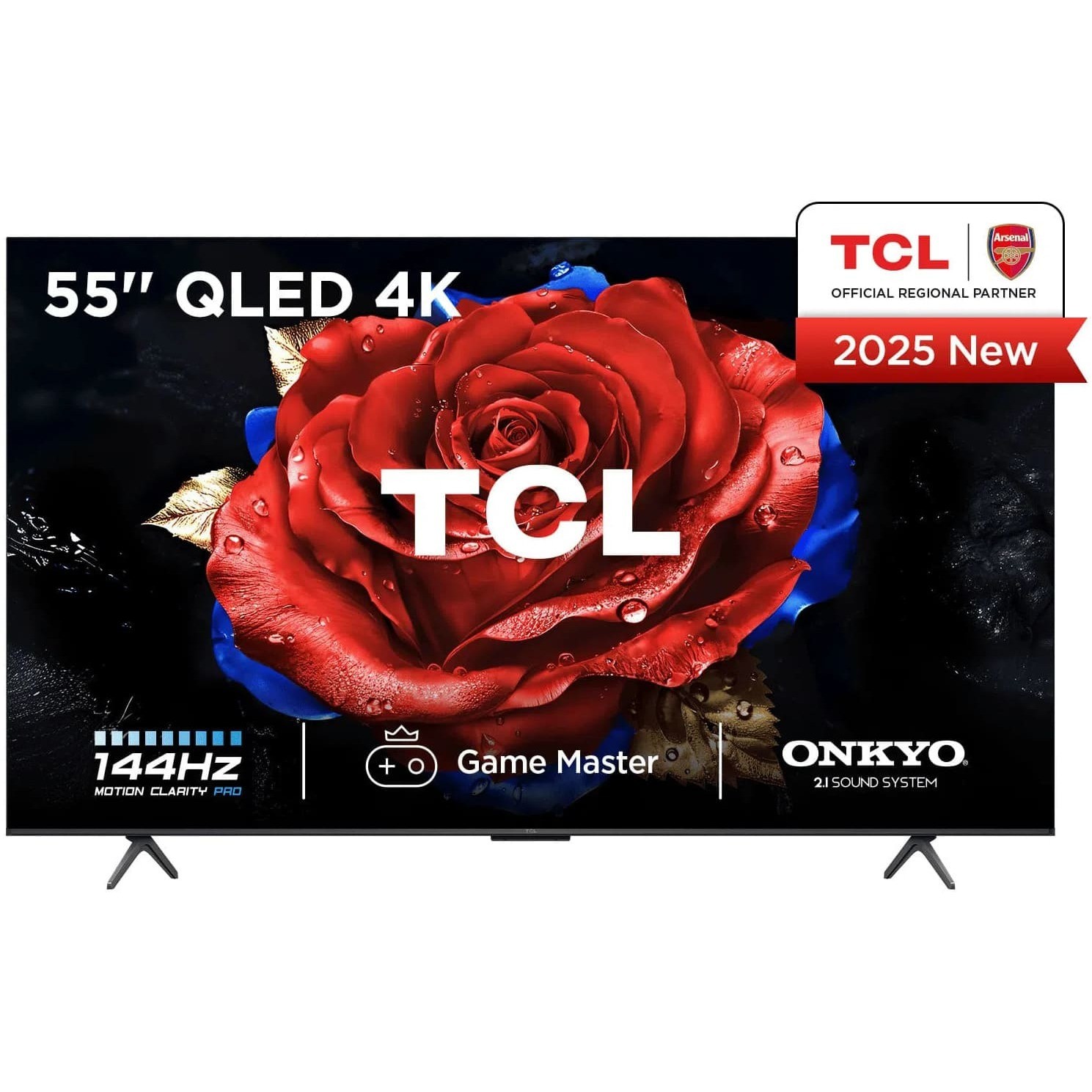 Телевизоры от компании TCL, модель 55T8C, Размер диагонали 55 ", Операционная система Google TV (Android TV) и Матрица QLED, а также Тип подсветки Direct LED.