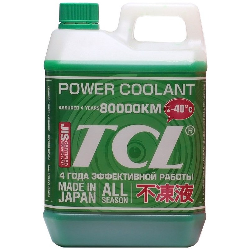 Охлаждающая жидкость от компании TCL, модель Power Coolant Green -40 2L, Температура замерзания -40 °С, Объем 2 л и Цвет зеленый, а также Класс G12++.
