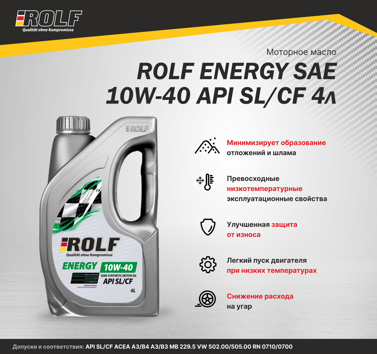 | Соответствие стандартам | ACEA A3/B4; API SL/CF |