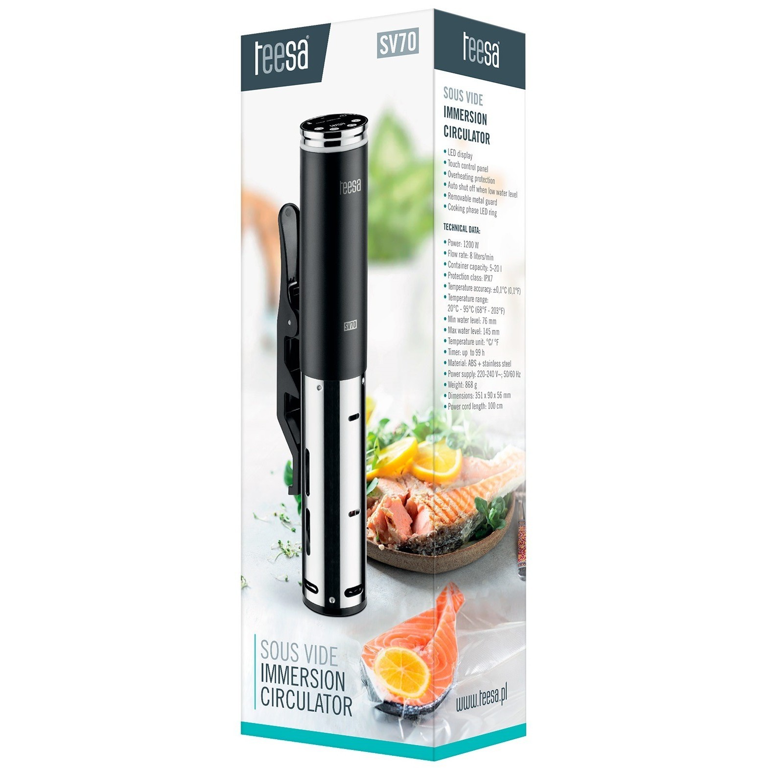 Мультиварки от компании Teesa, модель TSA8048, Тип су-вид, Мощность 1200 Вт и Управление сенсорное, а также Функции термостат(20 – 95 °C) / таймер автоотключения(99 часов).