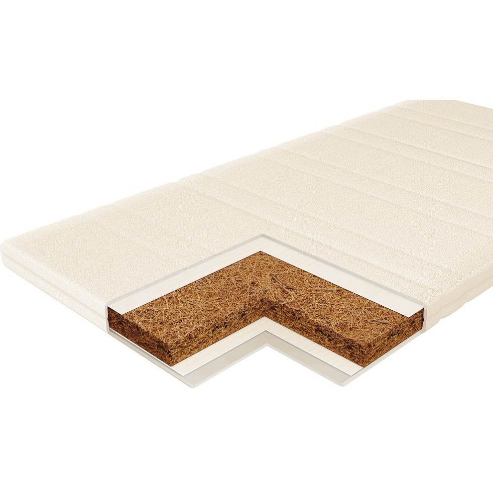 Матрасы от компании Vegas, модель Kids Teddy 42x83, Тип беспружинный, Жесткость высокая и Количество слоев 3 шт, а также Наполнитель хлопок, кокосовая койра.