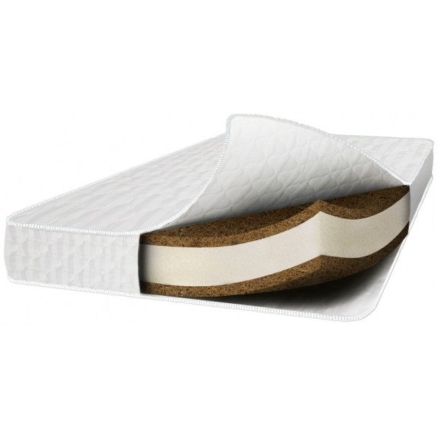 Матрасы от компании Veres, модель School 60х120, Тип беспружинный, Жесткость средняя / высокая (3/5), двусторонний и Количество слоев 3 шт, а также Наполнитель кокосовая койра, пенополиуретан.