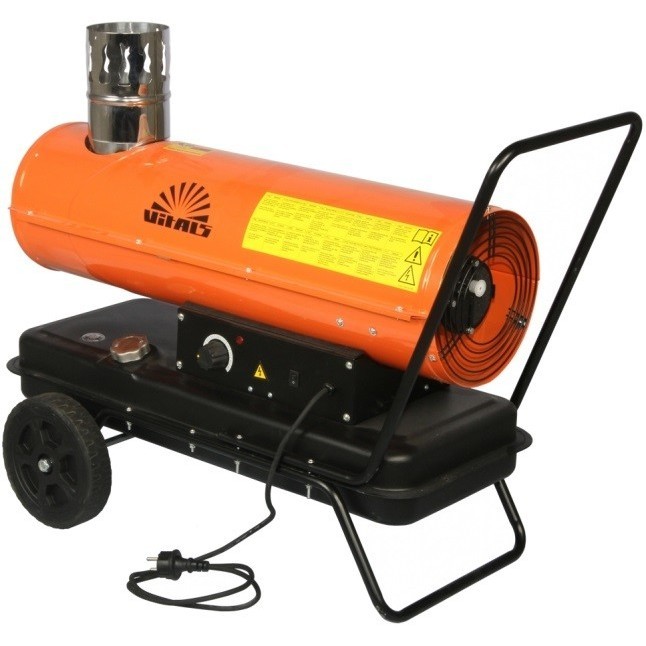 Тепловые пушки от компании Vitals, модель DHC-201, Источник питания дизельная, Тип выхлопа дизельных непрямой (отвод выхлопа) и Макс. тепловая мощность 20 кВт, а также Макс. площадь обогрева 200 м².