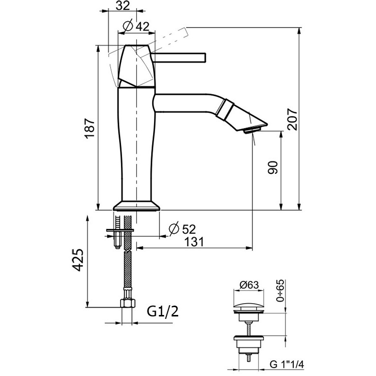 | Высота смесителя | 187 мм |
