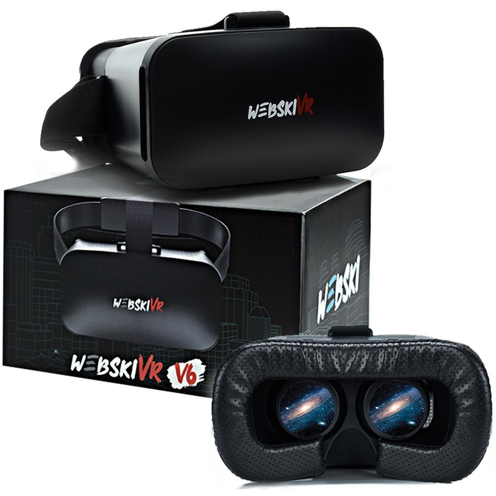 Очки виртуальной реальности от компании Webski, модель VR V6, Назначение для смартфона, Макс. диагональ телефона 7.6 " и Управление кнопочное, а также Материал корпуса пластик.