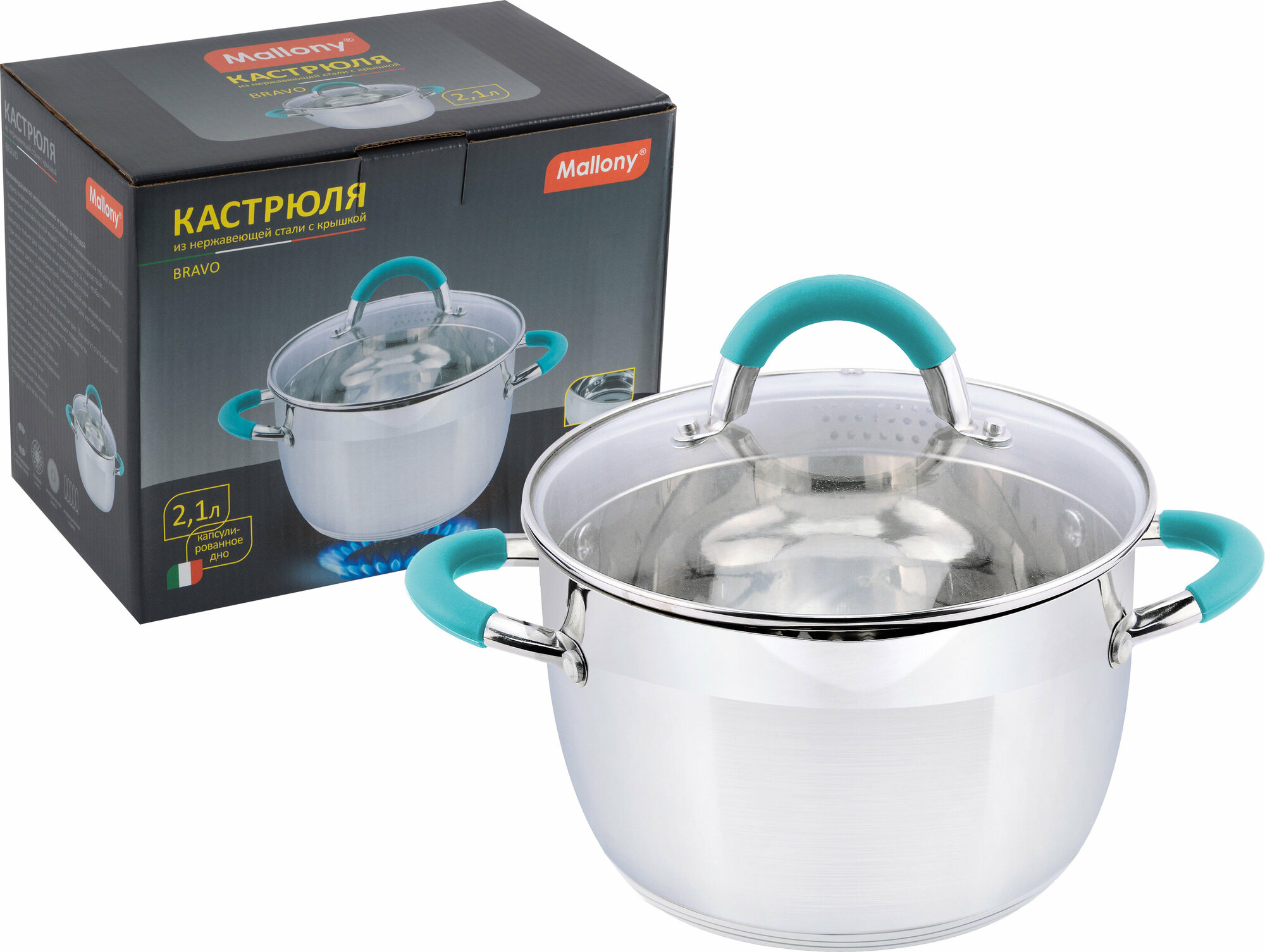 Кастрюля Mallony Bravo 2,1 л, стеклянная крышка, нержавеющая сталь