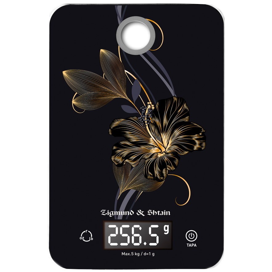Весы от компании Zigmund&Shtain, модель DS-111, Цвет черный, Тип весов кухонные и Механизм электронный, а также Максимальный вес измерений 5 кг.